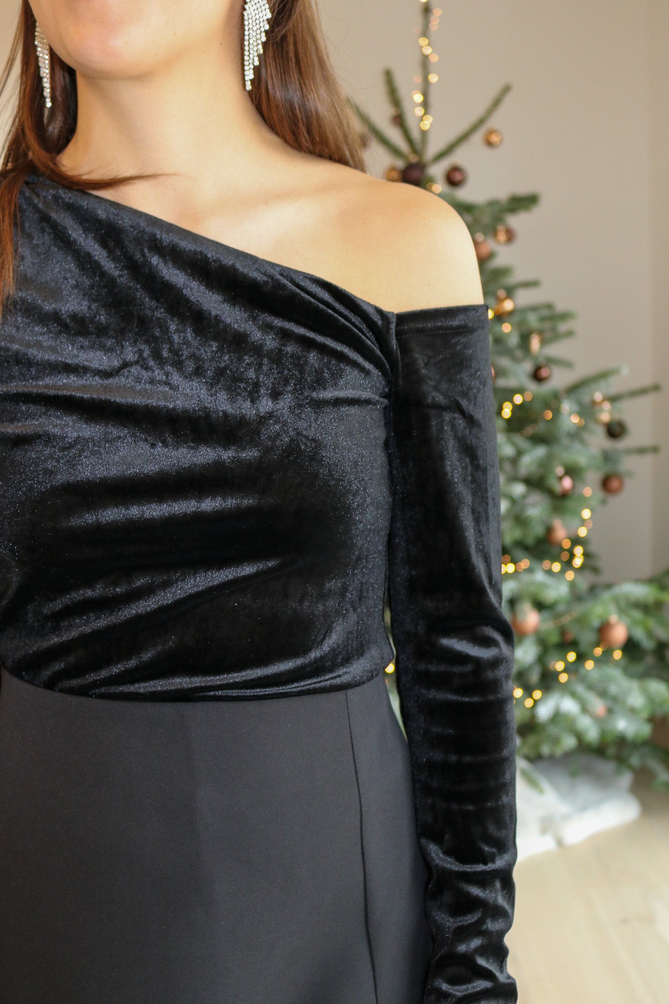One-Shoulder Top Velvet - Black